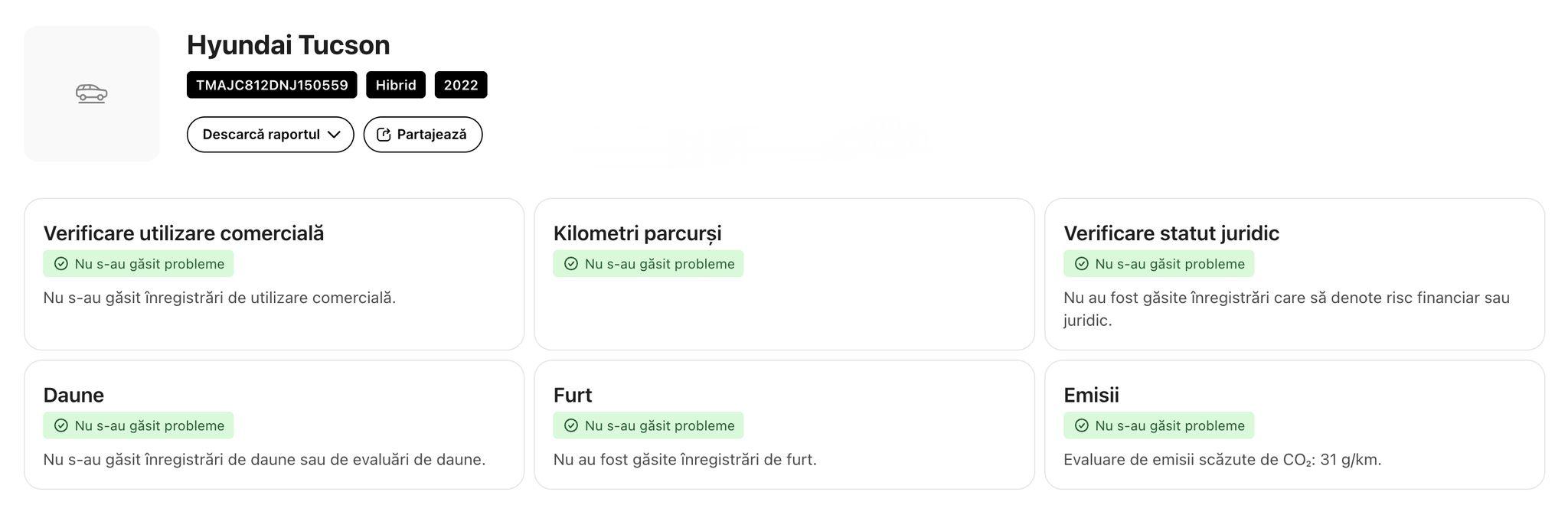 ➡️ Acest lucru poate fi dovedit prin verificarea numarului de identificare si a raportului Car Vertical (atasat, ultima poza)