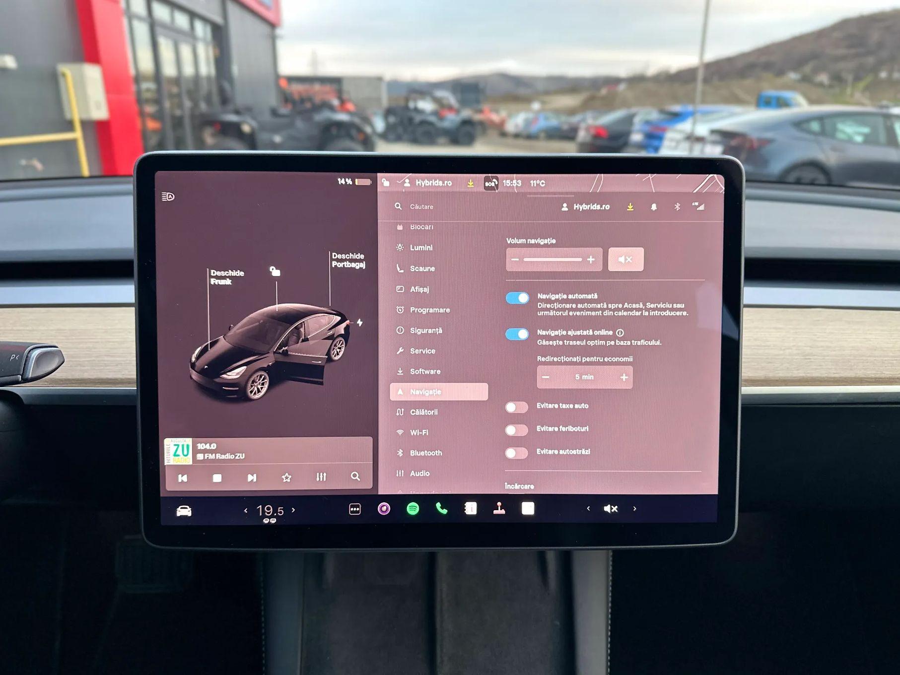 siguranță. Interiorul minimalist este dominat de un ecran tactil de 15", care oferă acces la