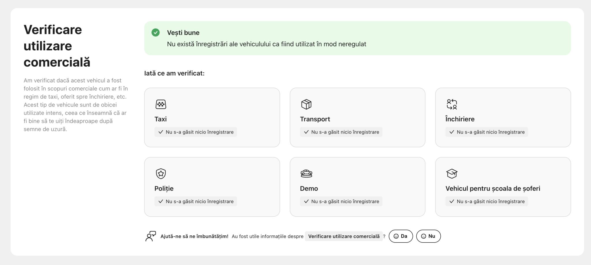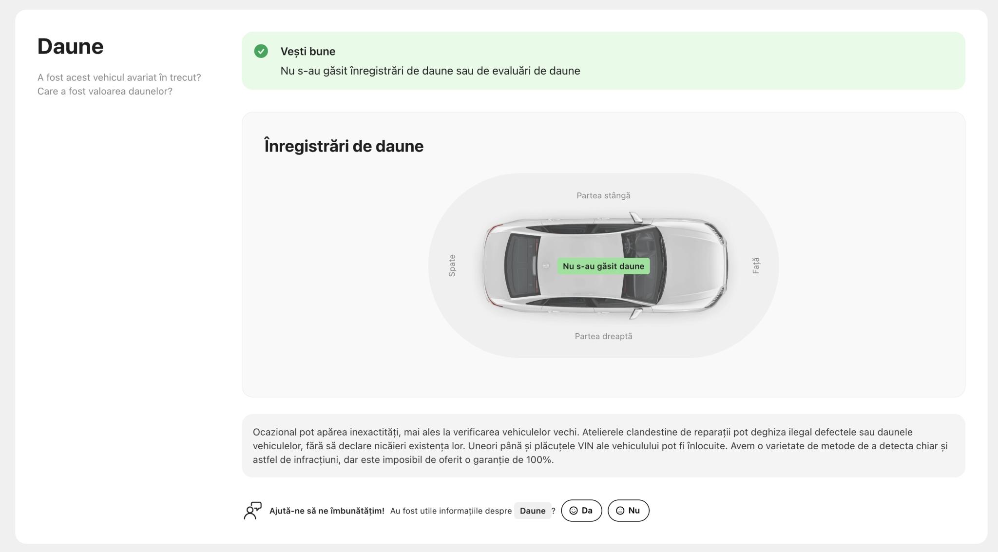 ➡️ AUTOTURISMUL NU A SUFERIT NICI UN ACCIDENT / INCIDENT