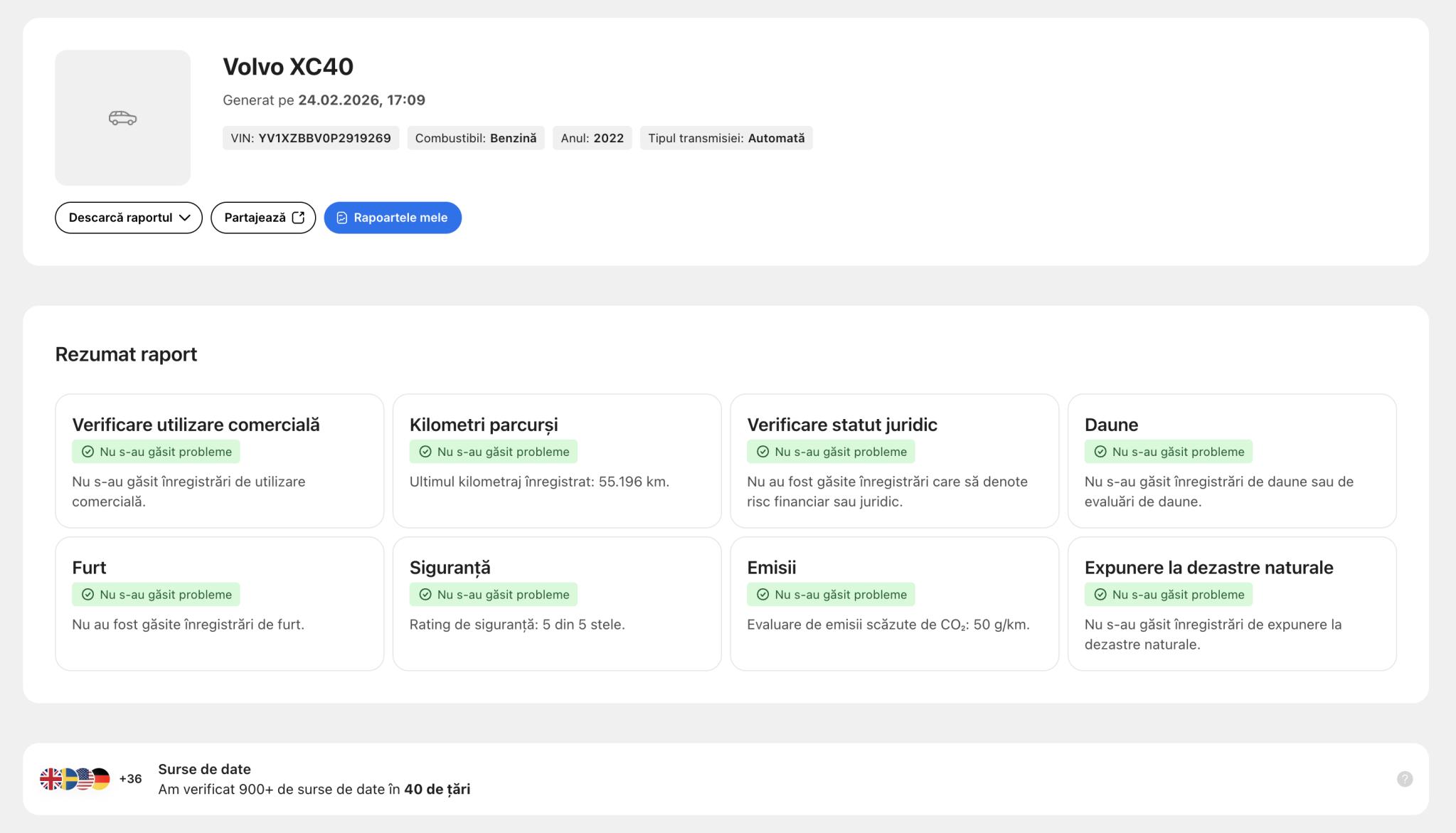 ➡️ Acest lucru poate fi dovedit prin verificarea numarului de identificare si a raportului Car Vertical (atasata, ultima poza)