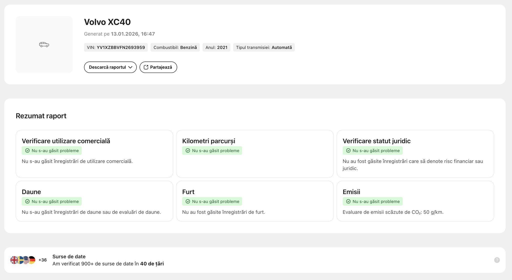 ➡️ Acest lucru poate fi dovedit prin verificarea numarului de identificare si a raportului Car Vertical (atasat ultima poza)