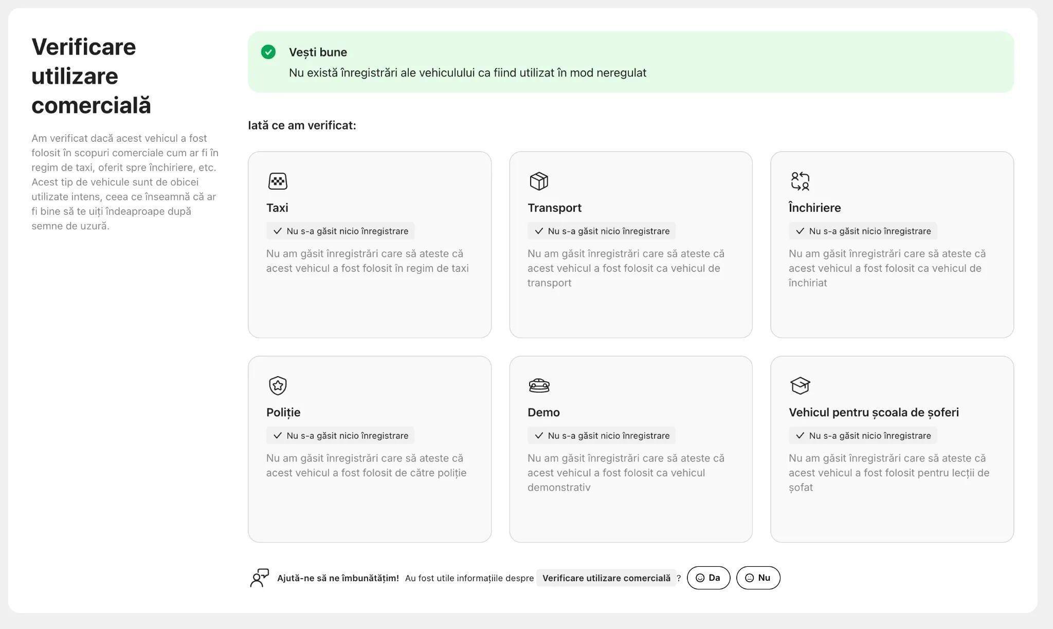 ➡️ AUTOTURISMUL NU A SUFERIT NICI UN ACCIDENT / INCIDENT