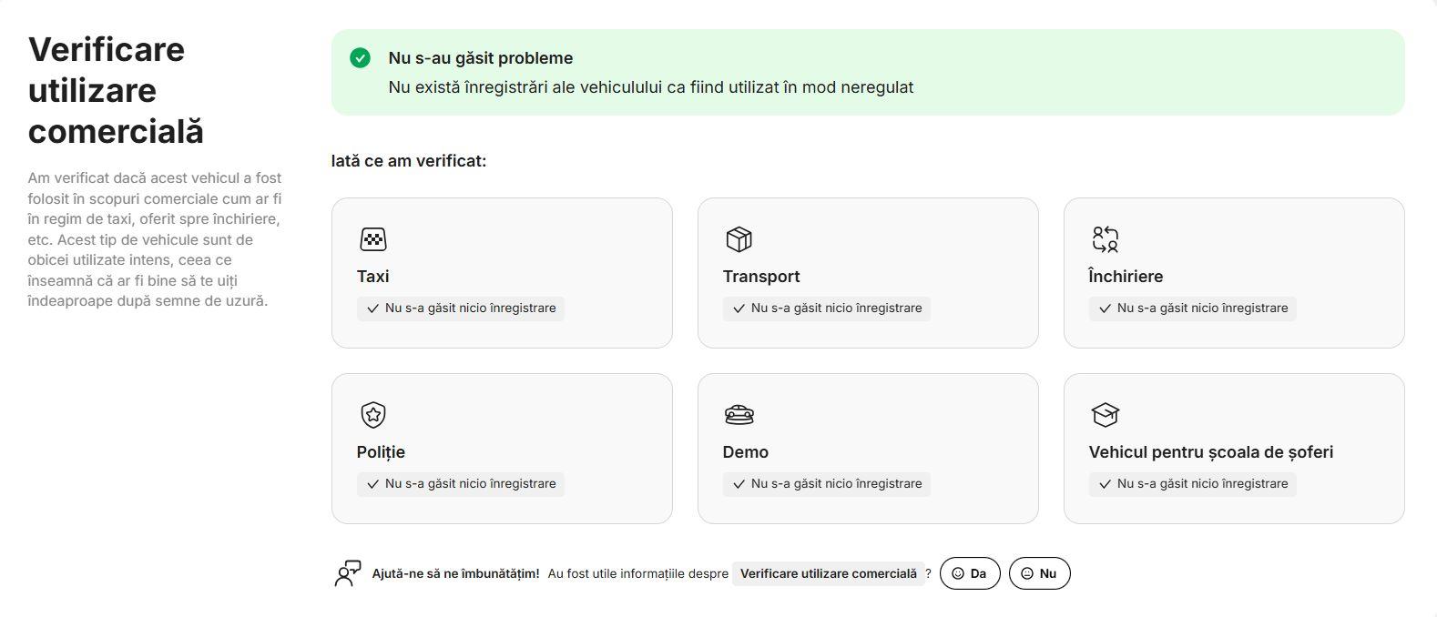 ➡️ AUTOTURISMUL NU A SUFERIT NICI UN ACCIDENT / INCIDENT